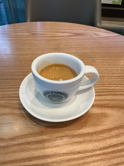 수업 도중 잠이 쏟아져서 중간에 에스프레소 한 잔을 마시러 왔습니다.