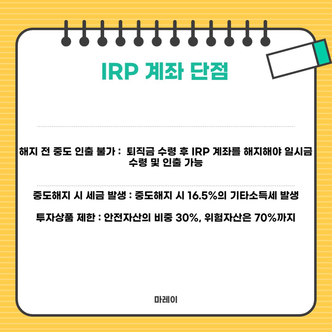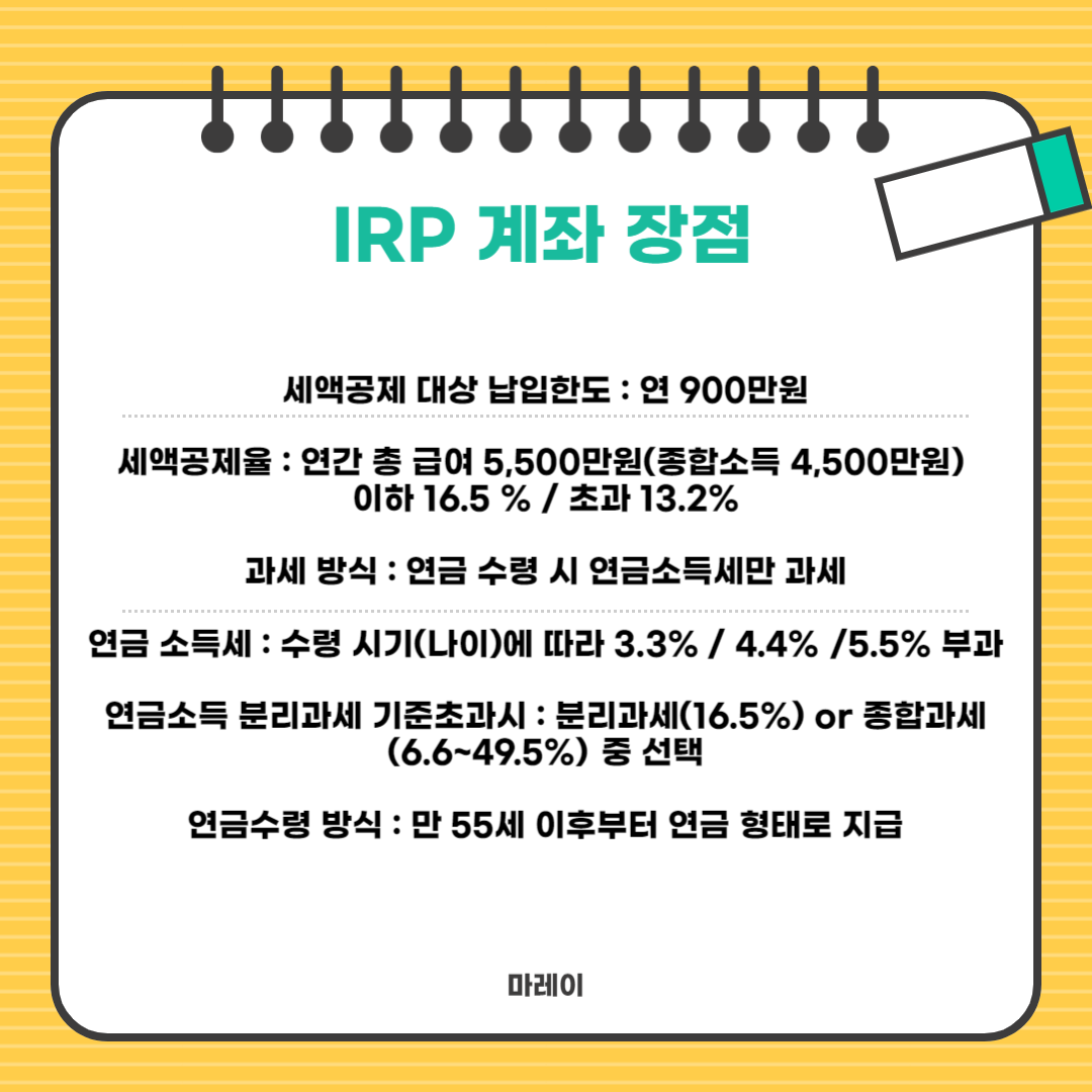 IRP 계좌는 개인형 퇴직연금(Individual Retirement Pension)의 약자입니다.