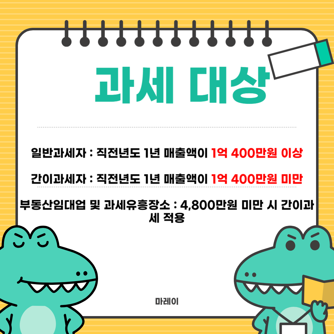 과세대상은 크게 일반과세자와 간이과세자로 나뉩니다.